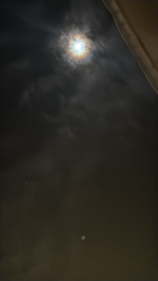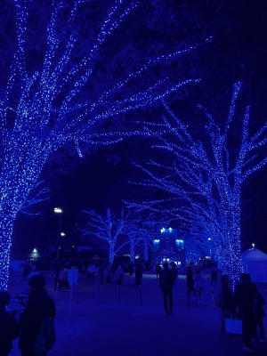 蓬莱島のライトアップが、窖の島に見えてきた。
